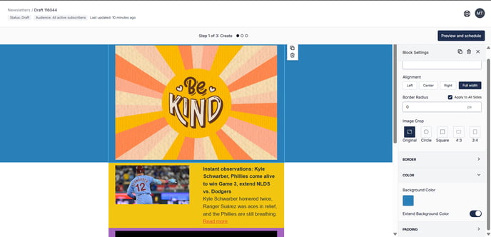 - After uploading your image, you can customize how it appears in your newsletter using the Block Settings panel.