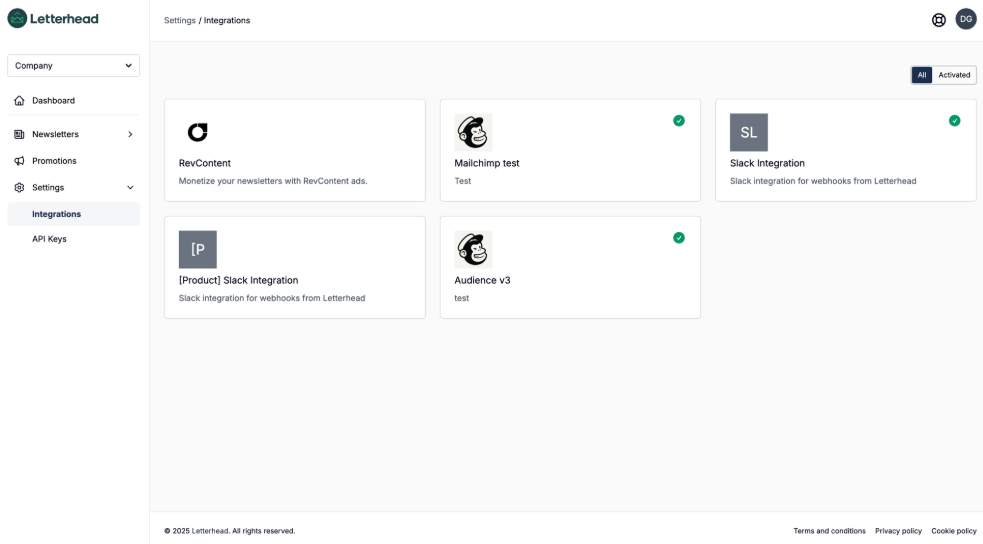 API Key: Create a new Company API Key in Letterhead for the integration.