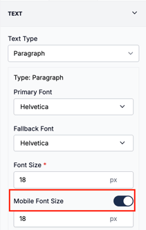 Locate the Mobile Font Size setting in the Text tab