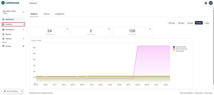 - Add Subscribers via the Letterhead Embed Form (explained in detail below)