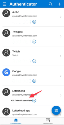 You’ll see a new entry, usually automatically named “Letterhead”, added to your Authenticator app, showing a 6-digit code that refreshes every 30 seconds.