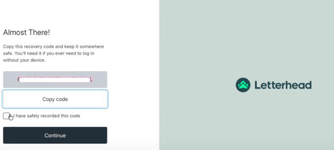 A recovery code will appear, this is a backup key that lets you access your account if you lose your device.